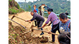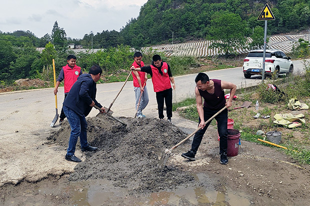 圖為余剛與平原村、村支兩委成員、志愿者一起修繕平原村通組路