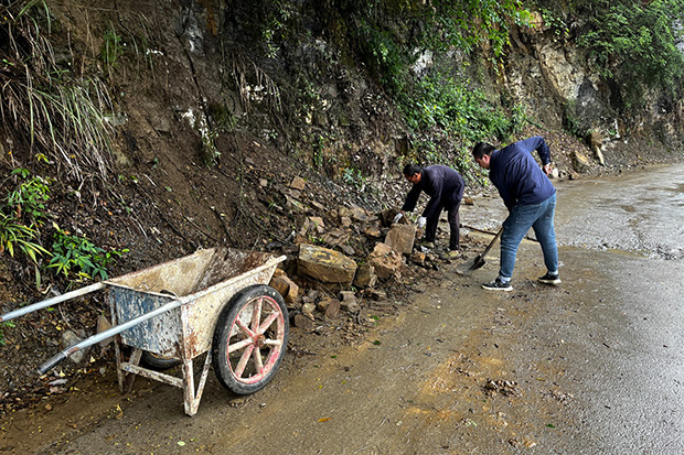 ? “通村道路出現(xiàn)多處山體滑坡,村委會(huì)正在組織清理淤泥和石塊,確保第一時(shí)間疏通道路,保障村民出行安全?!弊窳x卷煙廠駐村干部蹇師宇介紹當(dāng)前防汛搶險(xiǎn)救援工作情況。近日,遵義市正安縣瑞溪鎮(zhèn)團(tuán)結(jié)村遭遇大風(fēng)、冰雹、強(qiáng)降雨等極端天氣,蹇師宇快速反應(yīng),全力投入到防汛搶險(xiǎn)救援工作中,切實(shí)守護(hù)村民生命財(cái)產(chǎn)安全。