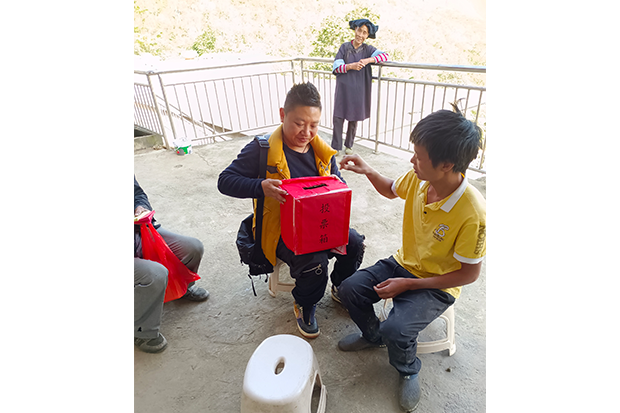圖為聶珂設(shè)置流動投票箱組織開展村委換屆選舉