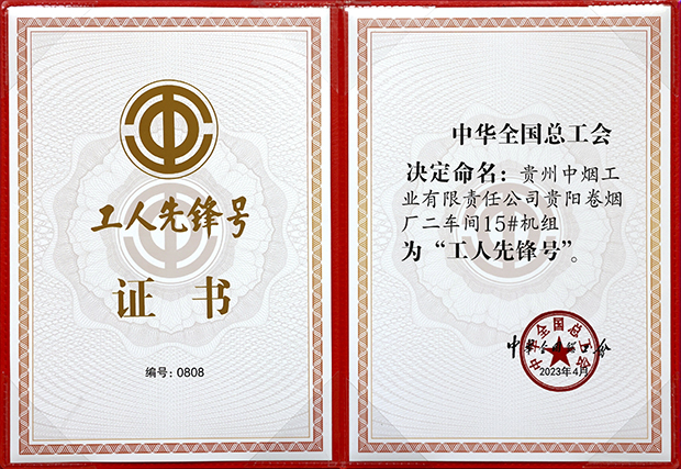 近日,經(jīng)中華全國(guó)總工會(huì)評(píng)選,貴州中煙工業(yè)有限責(zé)任公司貴陽(yáng)卷煙廠卷包車(chē)間15號(hào)卷包機(jī)組獲2023年“全國(guó)工人先鋒號(hào)”稱(chēng)號(hào),為工廠實(shí)現(xiàn)創(chuàng)建行業(yè)“一流優(yōu)秀重點(diǎn)卷煙工廠”目標(biāo)再添新績(jī)。
