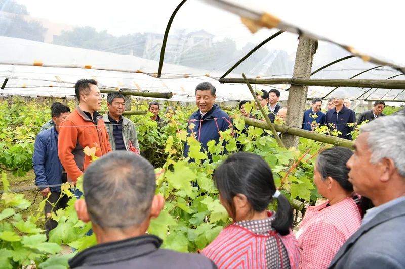 4月25日至27日,中共中央總書記、國家主席、中央軍委主席習(xí)近平在廣西考察。這是25日上午,習(xí)近平在桂林市全州縣才灣鎮(zhèn)毛竹山村,走進(jìn)葡萄種植園,同農(nóng)技人員和村民親切交流。新華社記者 謝環(huán)馳 攝